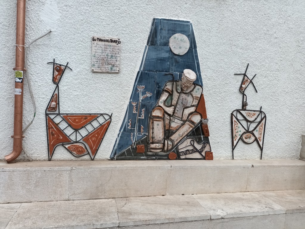 L’image en tête de cet article est une oeuvre murale – autrement dit, en anglais, du ‘street art’ – que l’on peut voir dans un village sarde: Orgosolo.